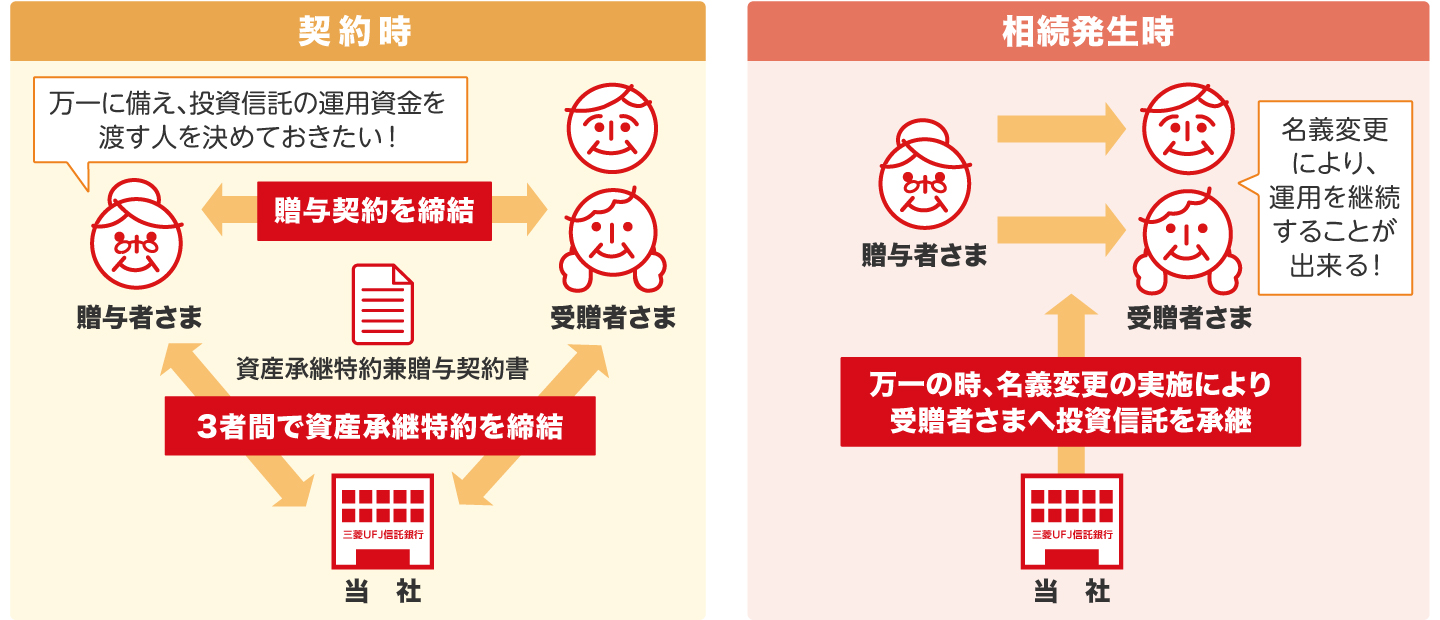 贈与対象となっている投資信託を簡単な手続きで受贈者さまに名義変更で承継することで、